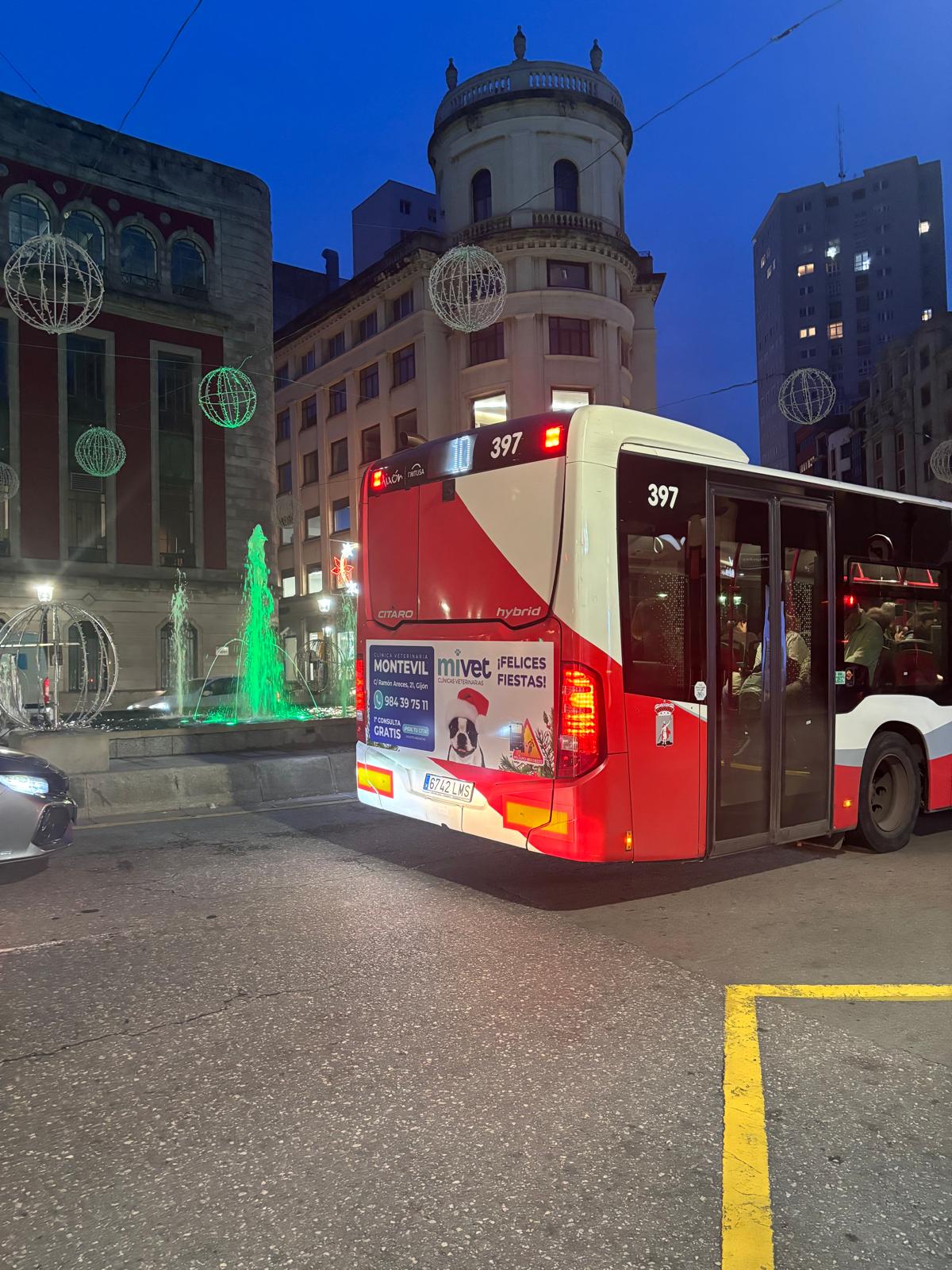 Publicidad exterior de MiVet en buses de Gijón.